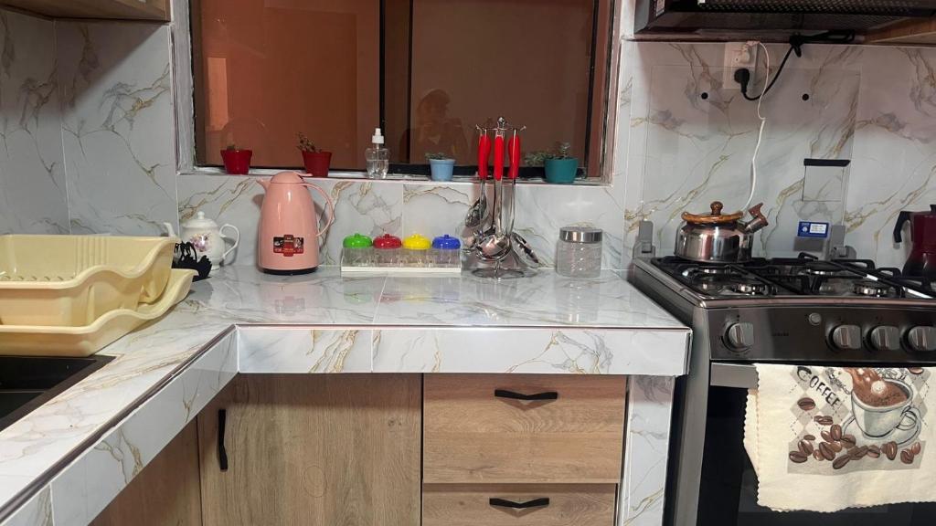 Cocina, Hervidor eléctrico, Horno, Mesa de comedor, Copas de vino