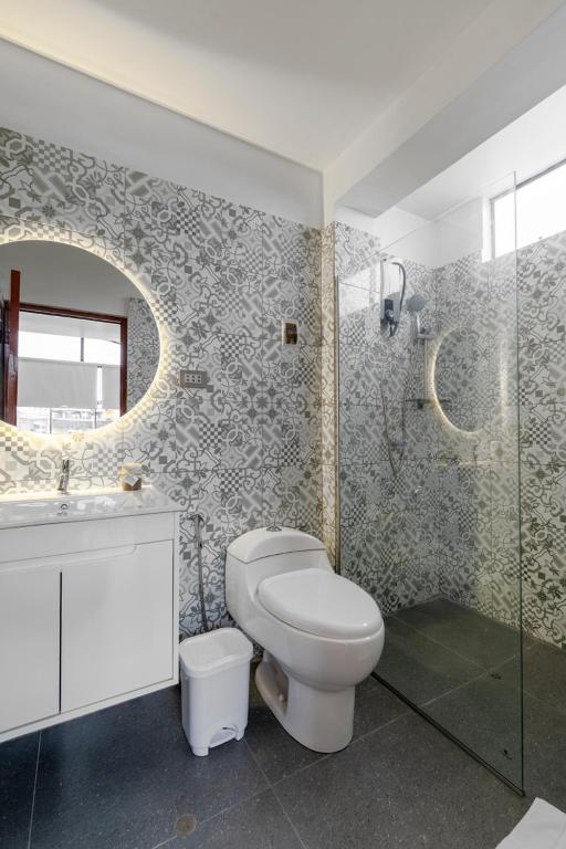 Ducha, Bañera, Secador de pelo, Artículos de aseo gratis, WC, Bidet, Toallas, Papel higiénico