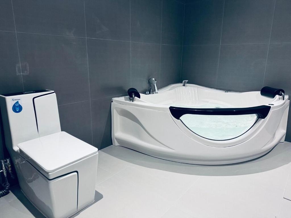 Guests will have a special experience as this apartment provides a hot tub and a spa bath. In the fully equipped kitchen, guests will find a refrigerator, kitchenware, an oven and an electric kettle. The spacious apartment offers a flat-screen TV with streaming services, a washing machine, a private entrance, a seating area as well as mountain views. The unit offers 1 bed.