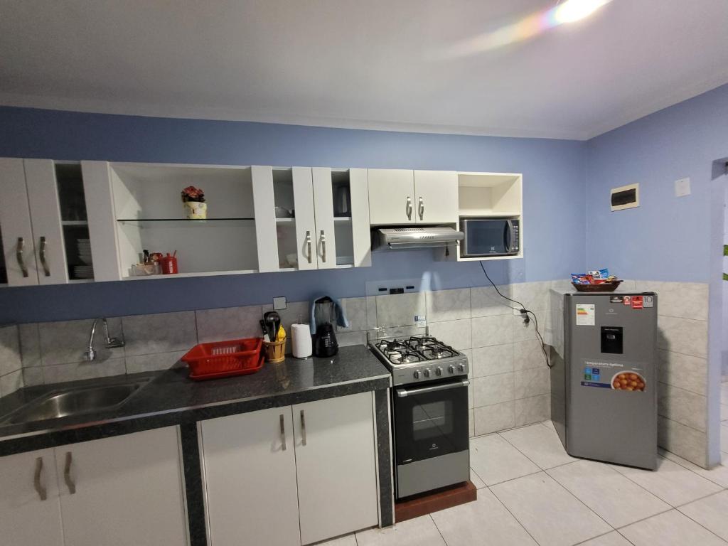 Zona de cocina, Nevera, Microondas, Lavavajillas, Lavadora, Cocina, Hervidor eléctrico, Utensilios de cocina, Mesa de comedor, Copas de vino, Horno