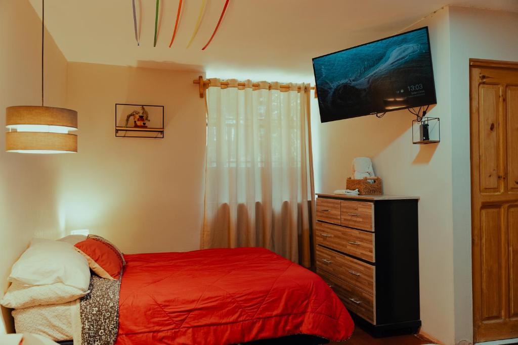 Kinti Wasi Casa de Campo Hospedaje ofrece las siguientes opciones: Habitación Triple con aseo compartido, Habitación Doble con baño privado, Habitación Compartida Mixta, Habitación Cuádruple Económica con baño compartido.