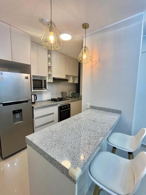 Zona de cocina, Nevera, Microondas, Lavavajillas, Cocina, Hervidor eléctrico, Cafetera, Mesa de comedor, Copas de vino